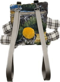 Bunny stuffed animal backpack with adjustable and removable straps. Main pocket is roughly 11” x 9”. Pom pom tail. YKK zipper. Handmade.
