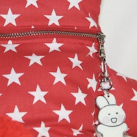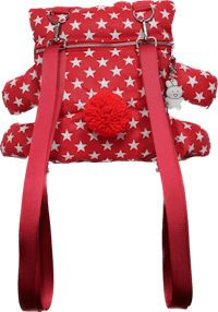 Bunny stuffed animal backpack with adjustable and removable straps. Main pocket is roughly 11” x 9”. Pom pom tail. YKK zipper. Handmade.