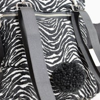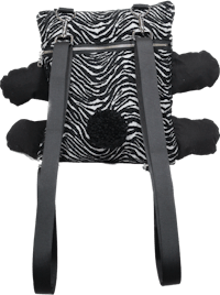 Bunny stuffed animal backpack with adjustable and removable straps. Main pocket is roughly 11” x 9”. Pom pom tail. YKK zipper. Handmade.
